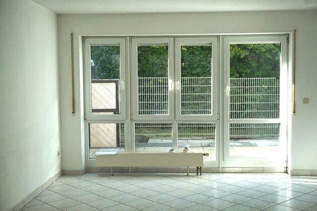 Helles und lichtdurchflutetes Wohnzimmer mit direktem Zugang zur Süd-Terrasse, Küche, Gäste-WC, Flur mit Garderobe